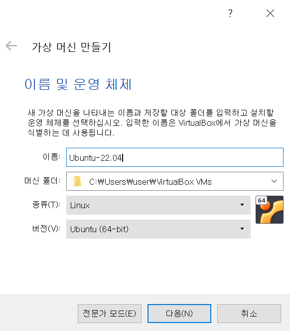 가상 머신 내에서 Ubuntu를 실행하기 위해 다음과 같은 과정으로 환경설정을 진행한다.