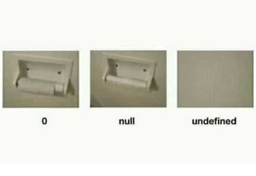 해당 그림에서 0은 휴지 걸이에 휴지는 없지만 휴지 곽만 있는 형태이고, null은 휴지 걸이에 휴지곽도 없음을 비유하였다.