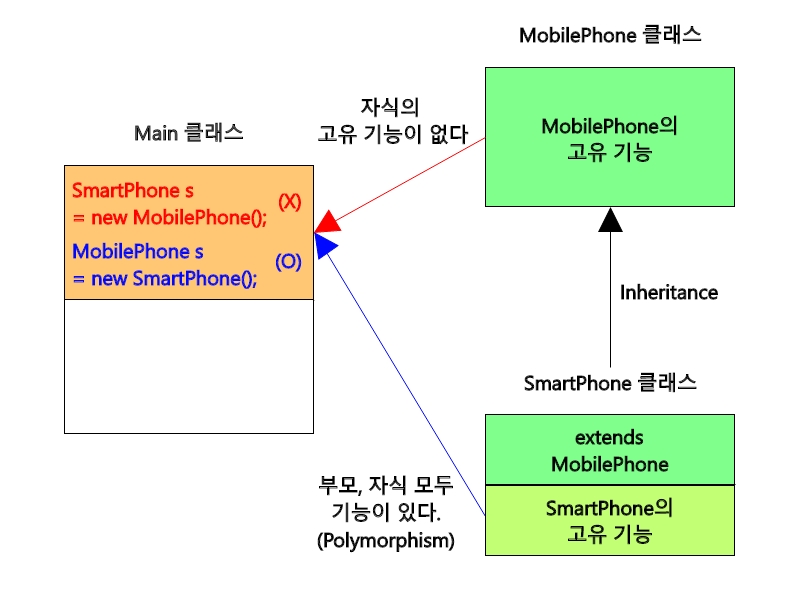 SmartPhone s = new MobilePhone(); // MobilePhone(부모) SmartPhone(자식)