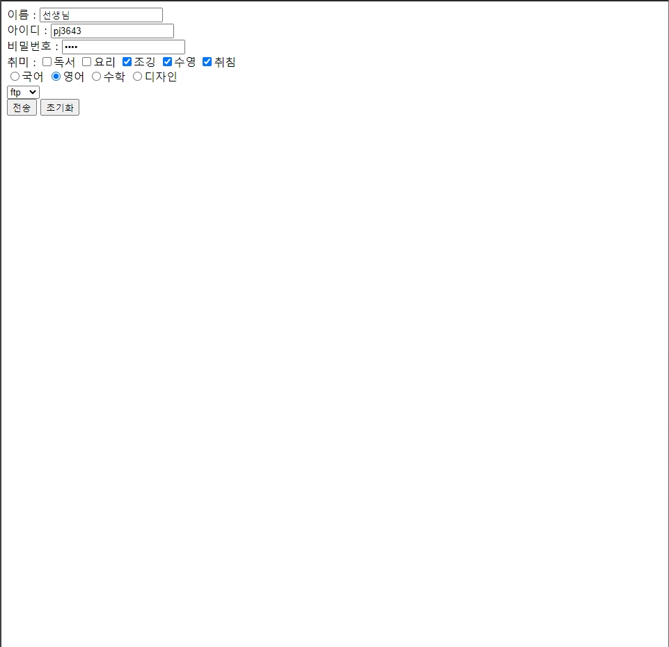전공 : <input type="radio" name="subject" value="Kor">국어