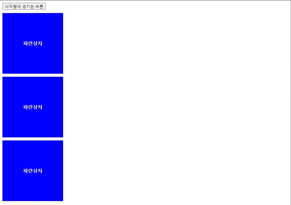 5. 버튼을 누르면 200*200 파란색 박스가 하나씩 계속해서 생기는 프로그램을 만드시오.