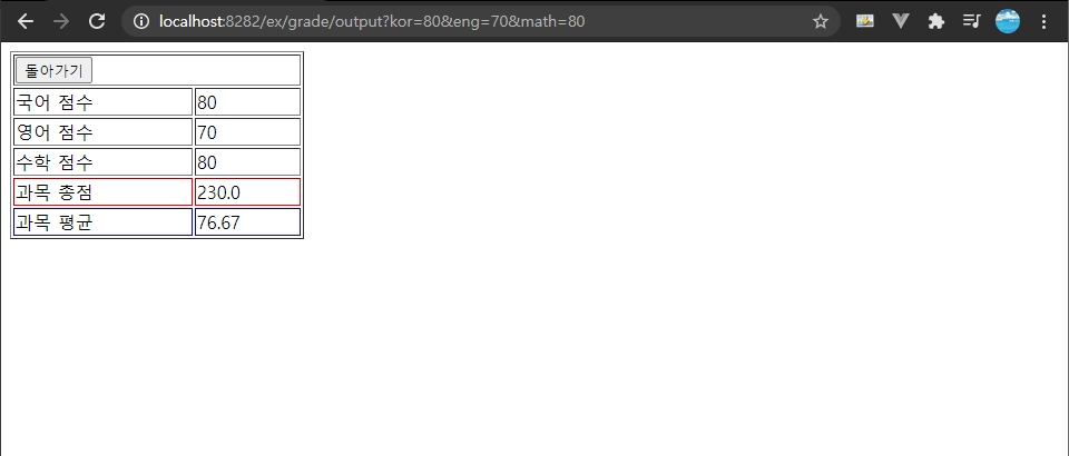 - 국영수점수를 서버에서 받아서,총점과 평균을 리턴