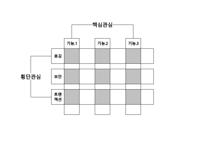 : Aspect Oriented Programming의 약자로, 핵심기능과 공통기능을 분리하여 둘과 공통이 되는 기능들을 중점으로 구현하는 프로그래밍.